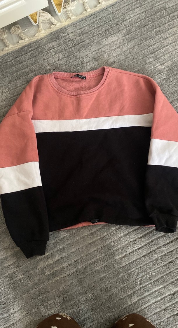 Pembe Siyah Renk Bloklu Kadın Sweatshirt