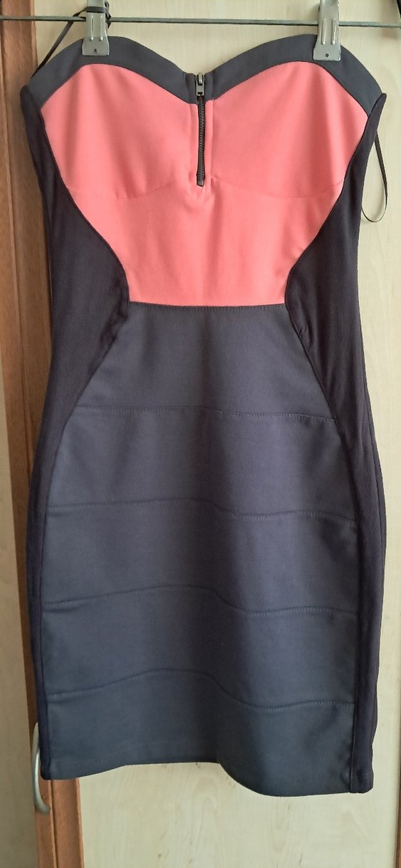 Pembe Siyah Straplez Midi Elbise