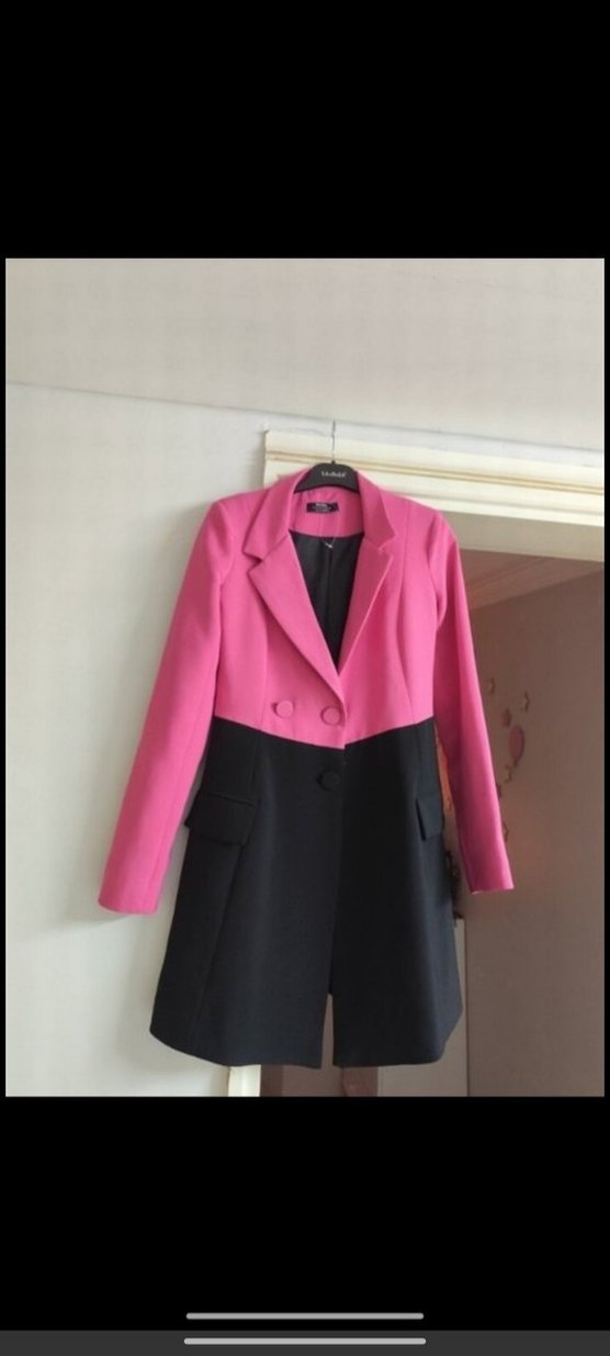 Pembe Siyah Uzun Kadın Blazer Ceket