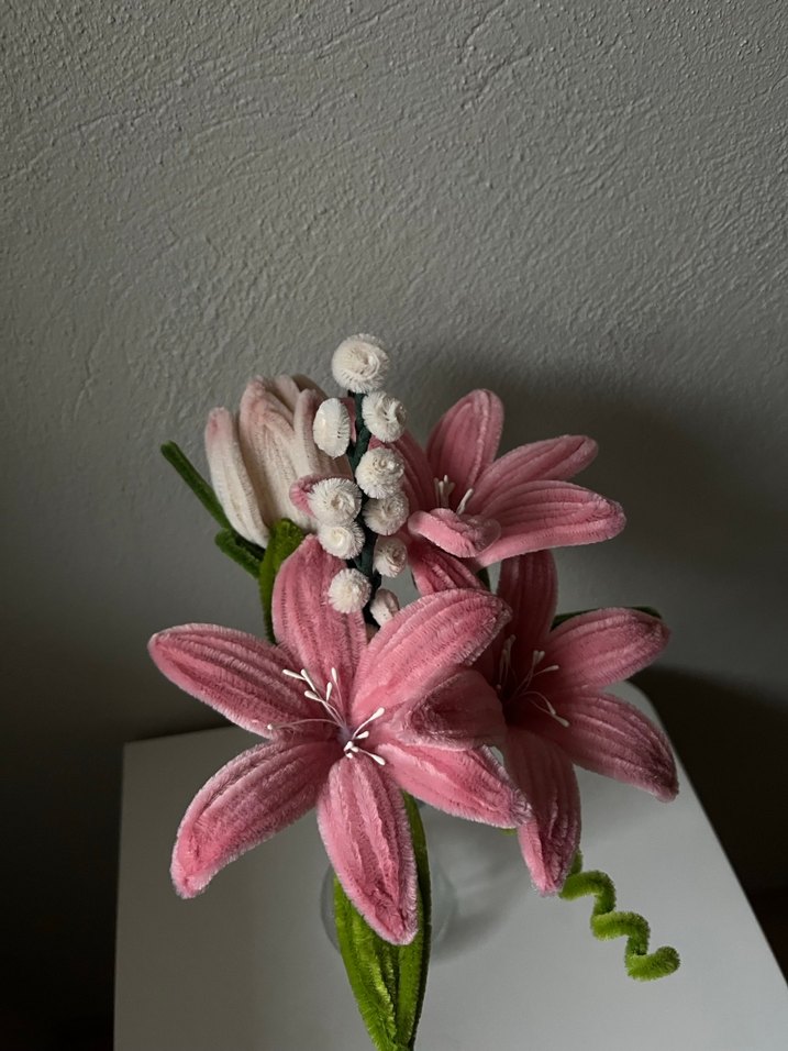 pembe zambak el işi çiçek ... istenilen renk yapılır elimde mevcut vazo ürüne dahil dehildir
