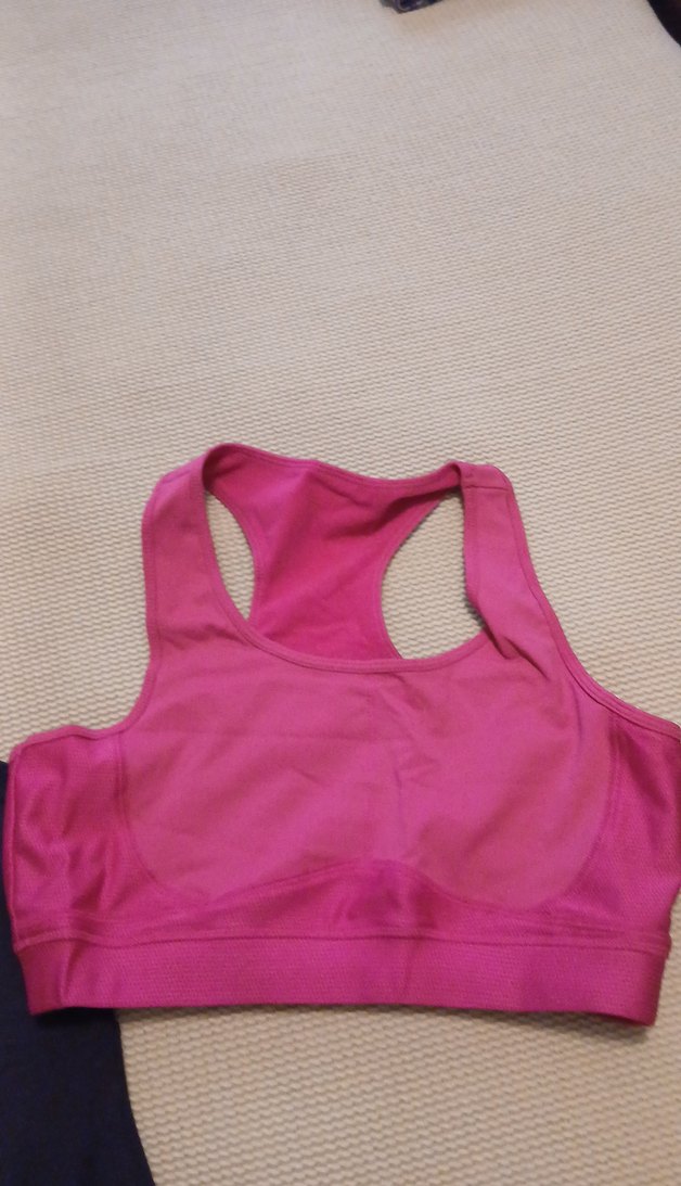 Pembe renkte, sırt kısmı racerback kesim olan ve normal boyda kaplama sağlayan sporcu sütyeni. Desensiz ve athleisure ile sokak modasına uygun.