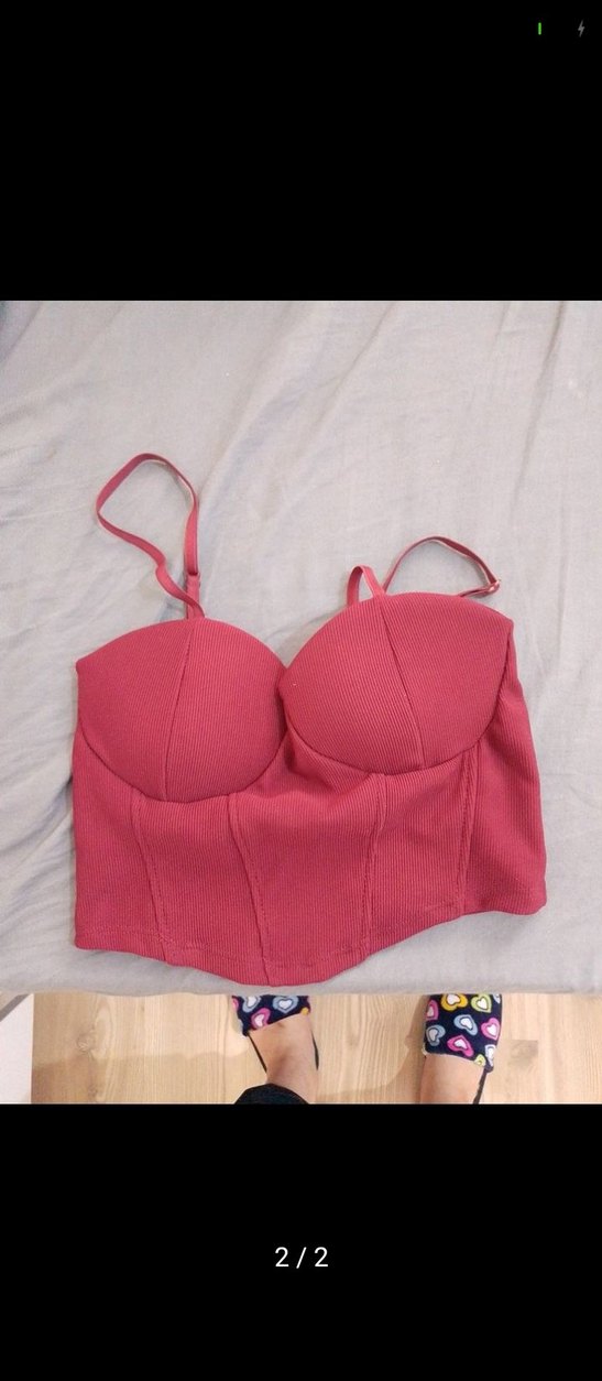 Düğmeli, ince askılı pembe kadife görünümlü, straplez yakalı ve normal boy midi büstiyer. Günlük spor sokak stili için uygundur.