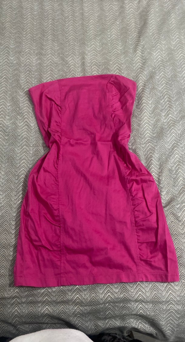 Pembe straplez , drapeli tasarımı ve vücuda oturan, kolsuz kesimiyle dikkat çekiyor. Normal miniboyda, yumuşak sentetik kumaştan üretilmiştir. Rahat bohem tarzı için uygun.