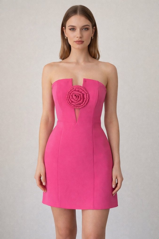 Pembe Straplez gece elbisesi etiketli yeni 36 beden