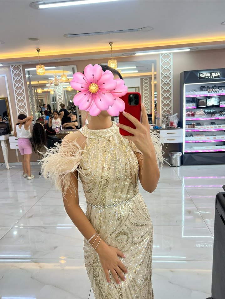 Krem rengi ,halter yaka ,tüy işlemeli omuzları belirginleştiren gösterişli bir detay, vücuda oturan mermaid kesim abiye✨✨