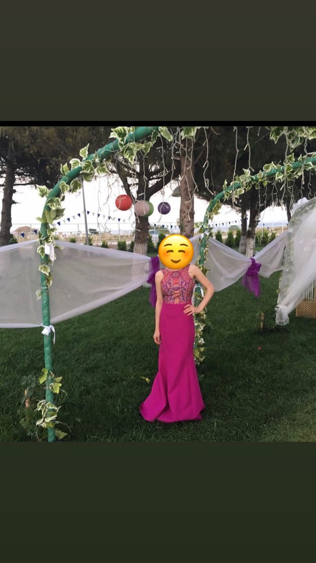 Bu pembe, straplez, uzun ve bohem tarzda etnik desenli elbise, fit kesimi ve drape detaylarıyla şık bir parti görünümü sunar.