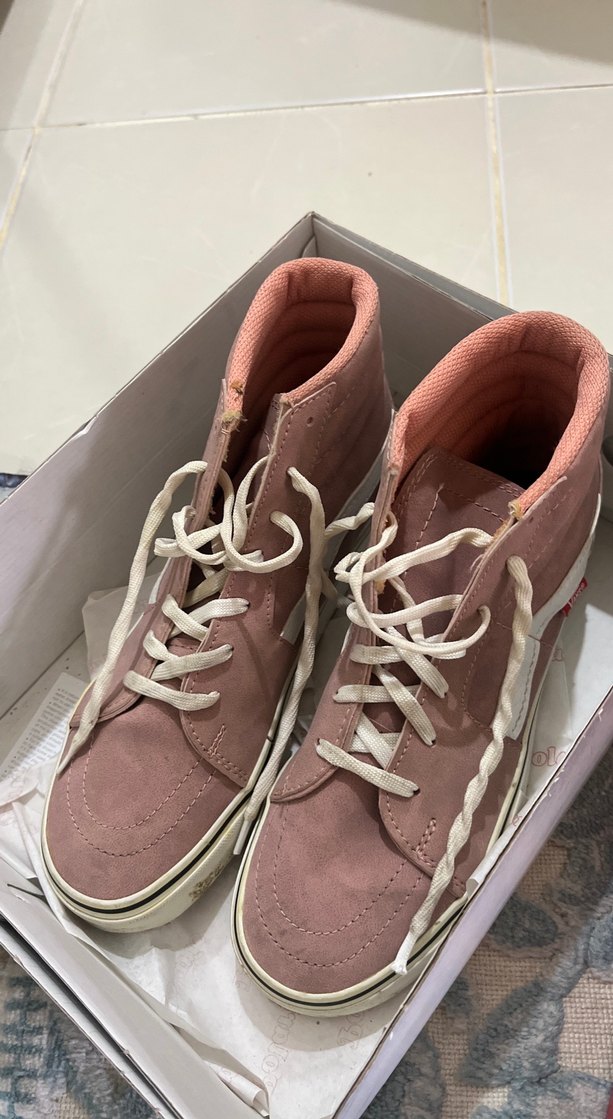 Pembe süet malzemeden yapılmış, stiletto topuklu ve bağcıklı kadın spor ayakkabısı. Pastel tonlarıyla günlük ve sokak stiline uygun.