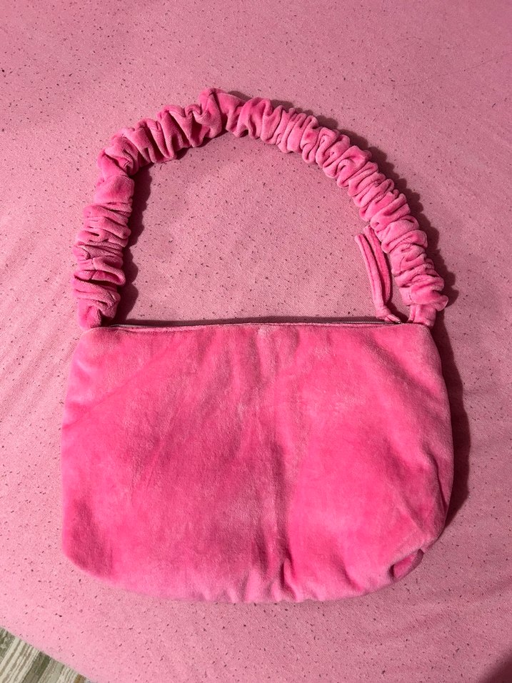 Pembe süet kadın çanta, fırfırlı sapı ve yumuşak dokusuyla romantik buluşmalar için uygun, bohem ve retro tarzda.