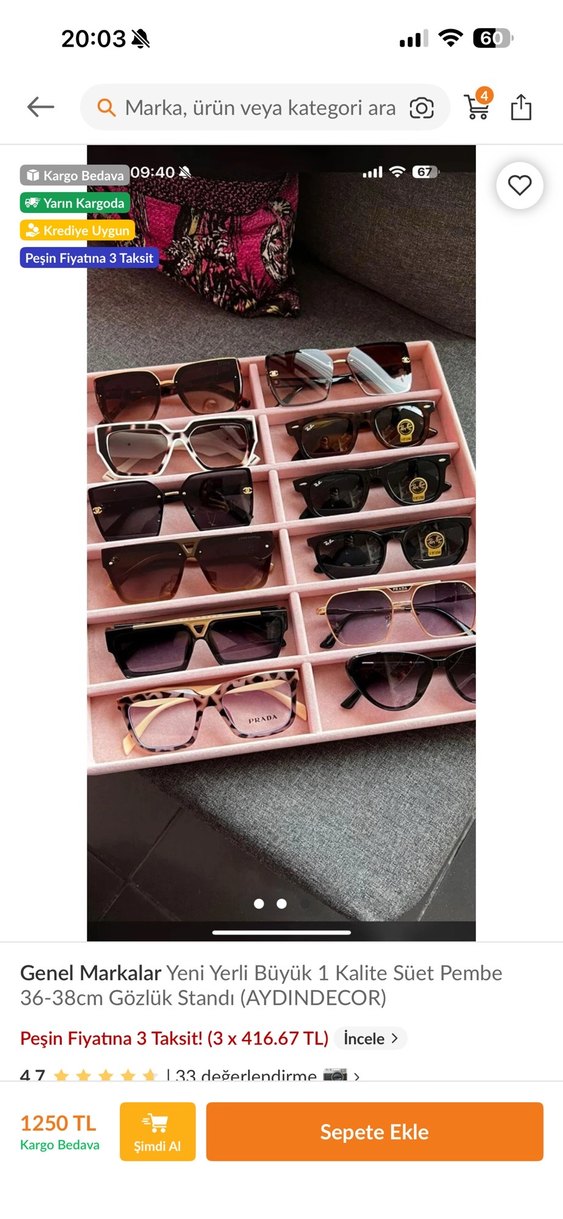 36-38 cm boyutunda, pembe süet malzemeden yapılmış, 3 katlı büyük gözlük standı. Trendy casual Paris tarzına uygun, şık ve fonksiyonel bir ürün. ✨