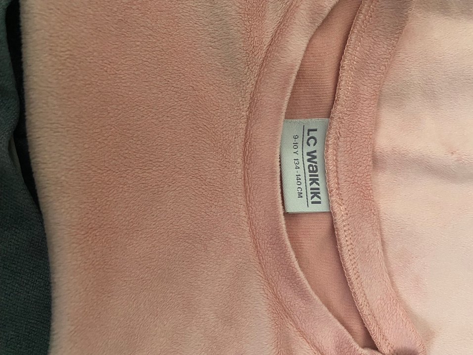 Pembe süet kumaştan, bisiklet yaka ve uzun kollu kadın sweatshirt. Normal boyda, fitted kesim ve fermuar detaylı, günlük kullanıma uygun rahat bir parça. Jean görünümlü tayt, kusuru yoktur, gayet iyi durumda.