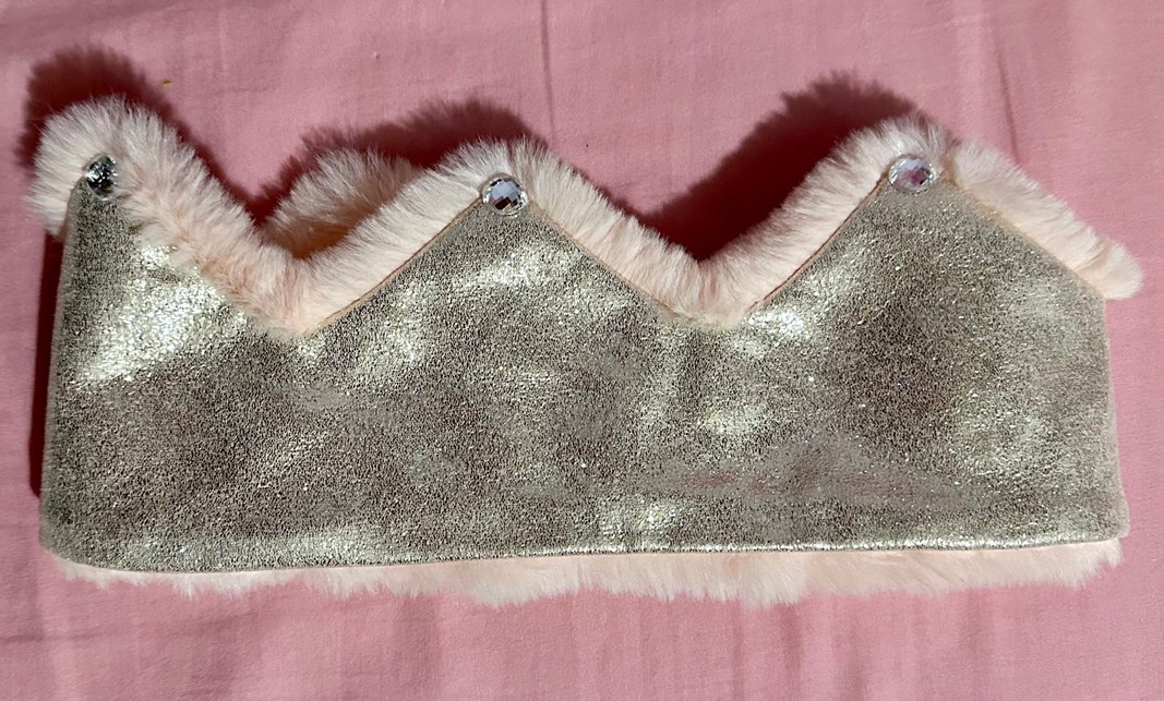 Pembe süet kumaştan, kenarları kürklü prenses saç bantı