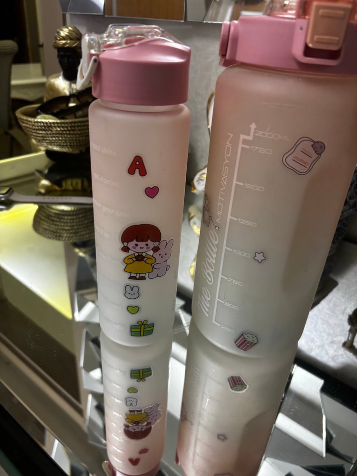 Pembe pastel renkte, sevimli çizgi film desenleri ve suluk2 li. Güvenli kapağa ve yumuşak dokunuşa sahiptir.