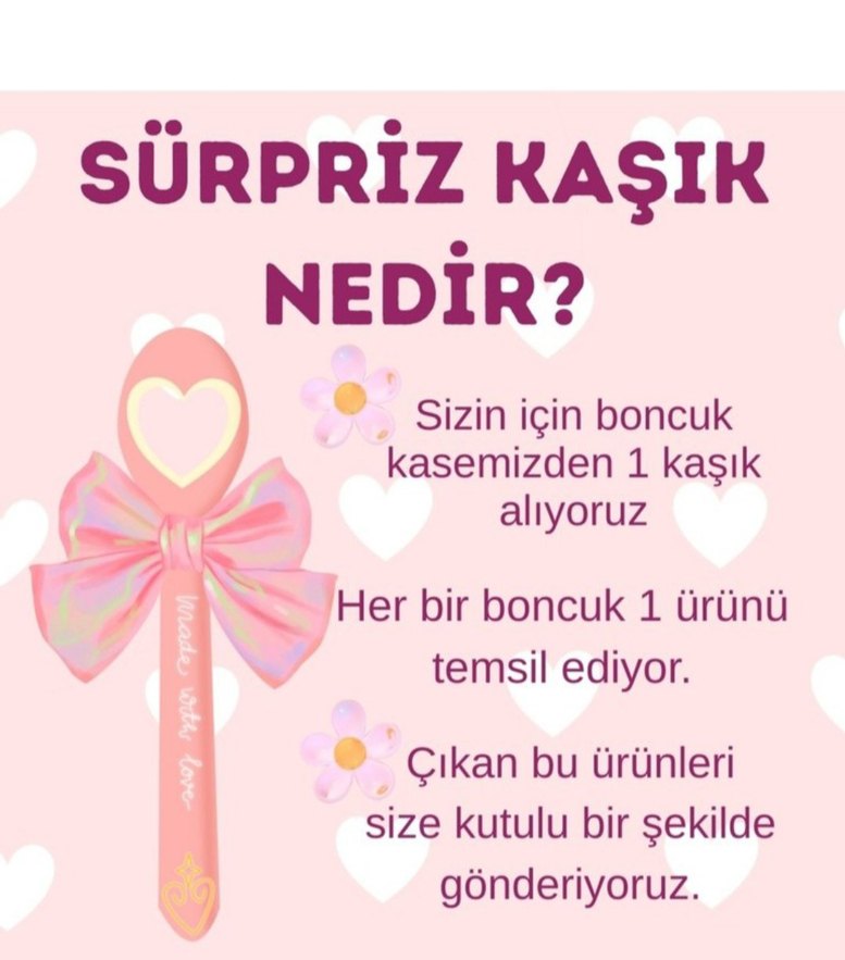 Pembe pastel renkli lip care ürünü, sürpriz kaşık konseptiyle geliyor. Her boncuk bir ürünü temsil eder, boncuk kasasından 1 kaşık alınır ve kutulu gönderilir. Not: Aldığınız bir kaşık dahi olsa onun videosu çekilip tiktok Instagram YouTube ve diğer sosyal mecralarda paylaşım yapıyoruz oralardan bizi takip edebilirsiniz Livelife markasıyla hesaplarımız