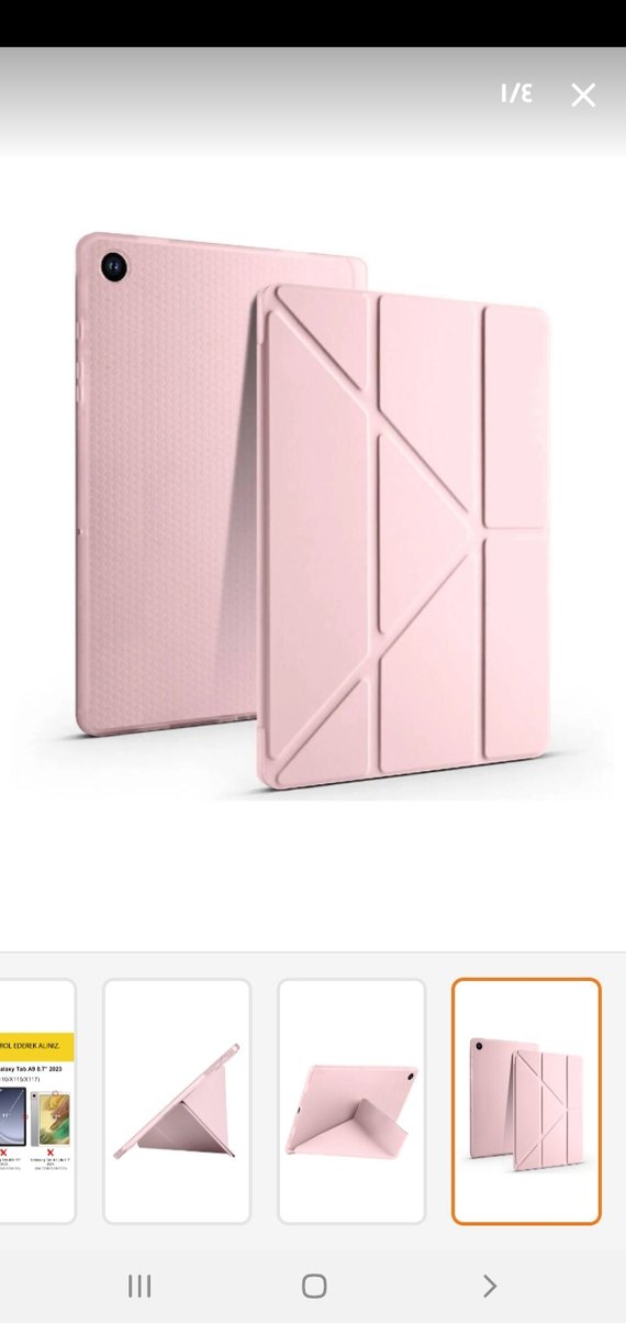 Katlanabilir kapak tasarımına ve dokulu arka yüzeye sahip pembe tablet kılıfı, kolay kullanım ve sağlam tutuş sağlar. tab A9 x110 8.7 lnç uyumlu kalwm bölmeli