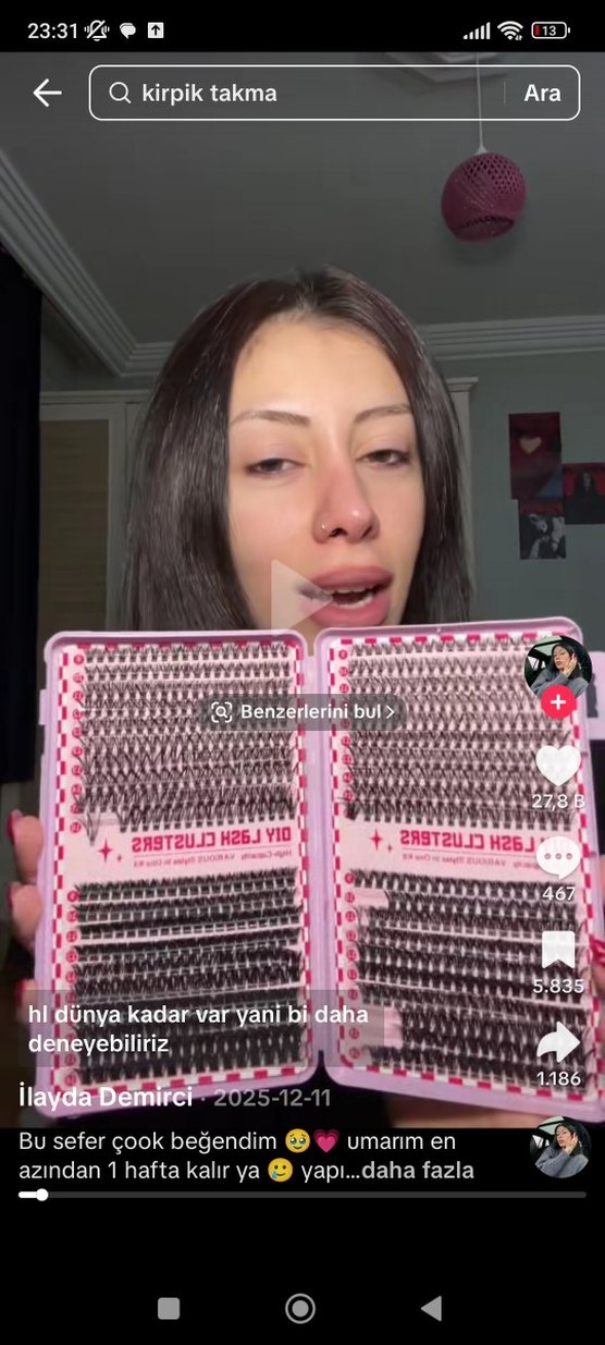 Koyu pembe renkte, çeşitli stillerde takma kirpik seti. Kişiselleştirilebilir görünüm için bireysel kirpikler içerir.