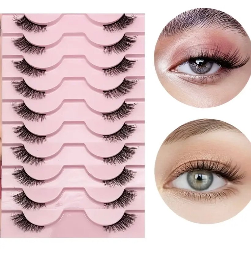 Doğal görünüm sağlayan açık pembe takma kirpik seti. Birden fazla kullanım için uygundur. Yarım kirpik