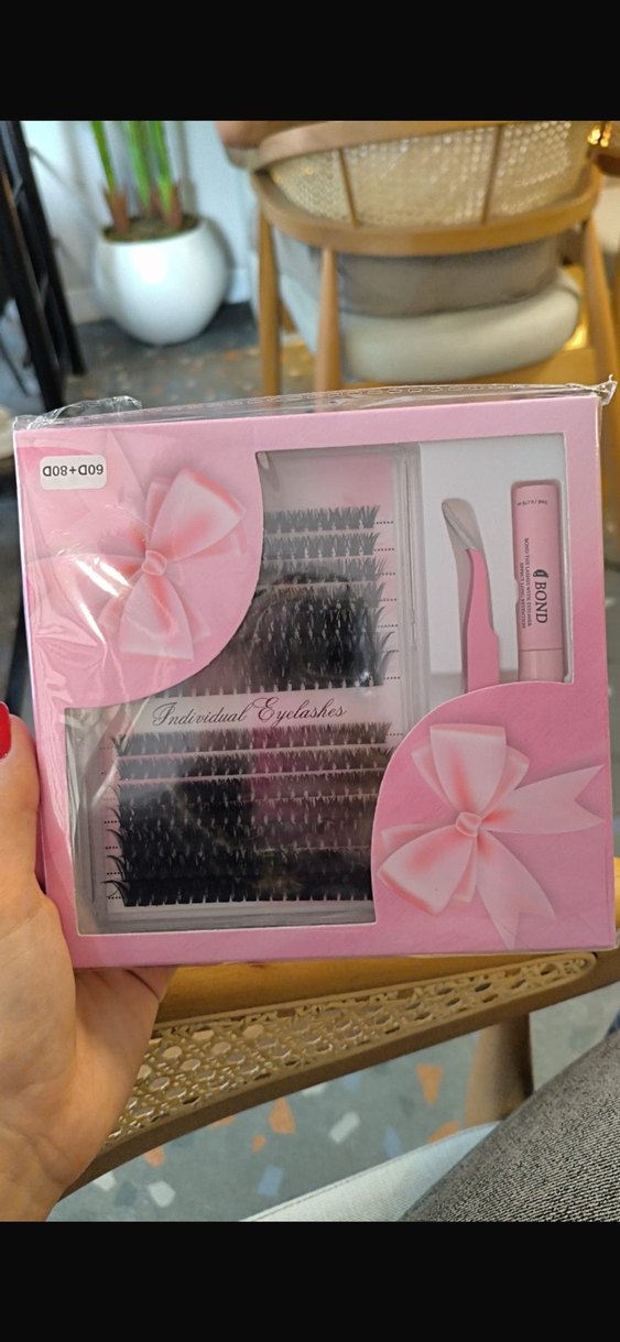 BOND marka pembe kutuda, bireysel takma kirpikler, aplikatör ve yapıştırıcı içeren set.