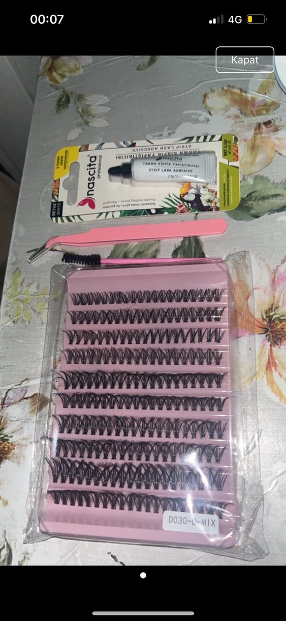 Pembe takma kirpik seti, hafif ve doğal görünümlü kirpikler, pembe uygulama aparatı ve kirpik yapıştırıcısı içerir. ️