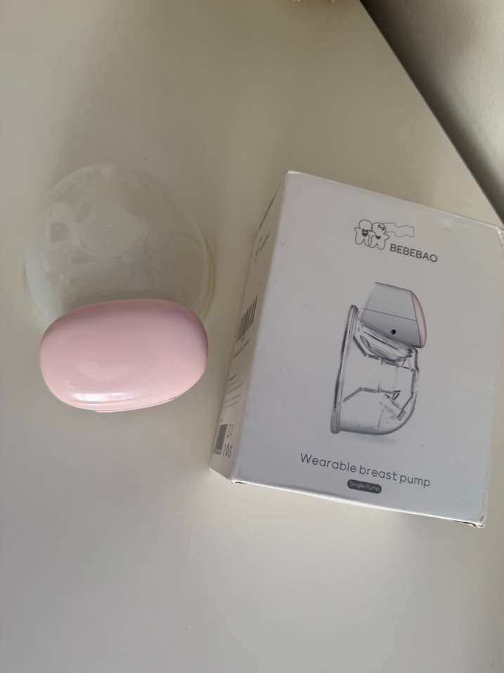 Pembe, taşınabilir ve giyilebilir göğüs pompası, yumuşak pastel renkte, kullanımı kolay ve pratik. Bebebao marka giyilebilir süt pompası