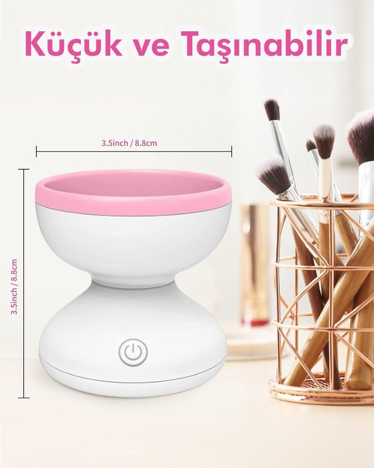3.5 inch (8.8 cm) ölçüsünde, küçük ve taşınabilir pembe makyaj fırçası temizleyici, kolay kullanımlı tasarıma sahiptir.