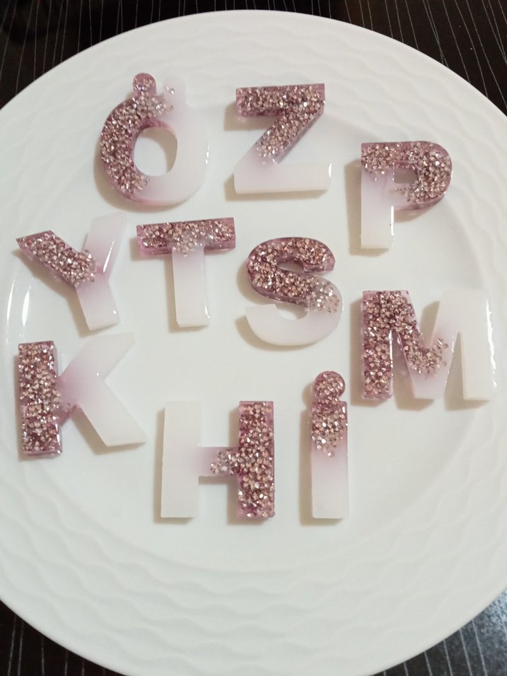 Pembe taşlı epoksi Kadın Anahtarlık Harfleri