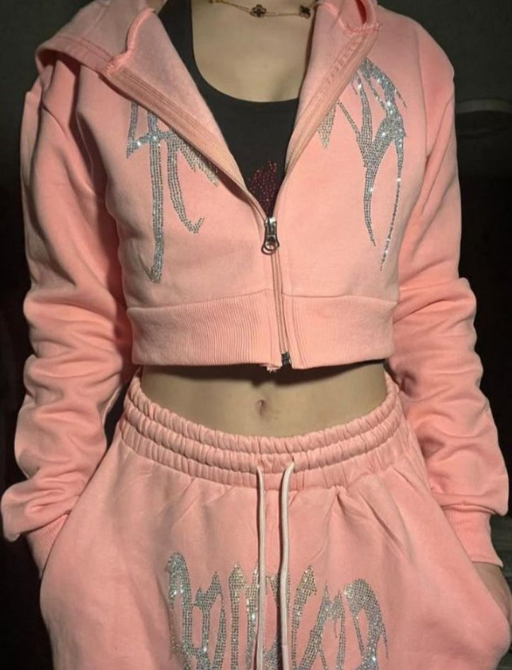 Pembe renkte, payet işlemeli nakış detaylı, bel ve paça lastikli eşofman altı ✨ L bedendir.