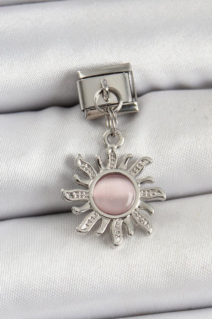 Pembe Taşlı Gümüş Güneş Charm