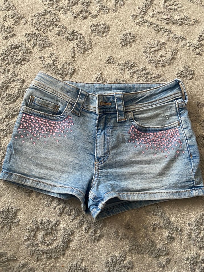 Ön ceplerinde pembe taşlı detaylar bulunan, kısa ve fitted kesim kadın kot şort. Günlük kullanıma uygun rahat tarzda.