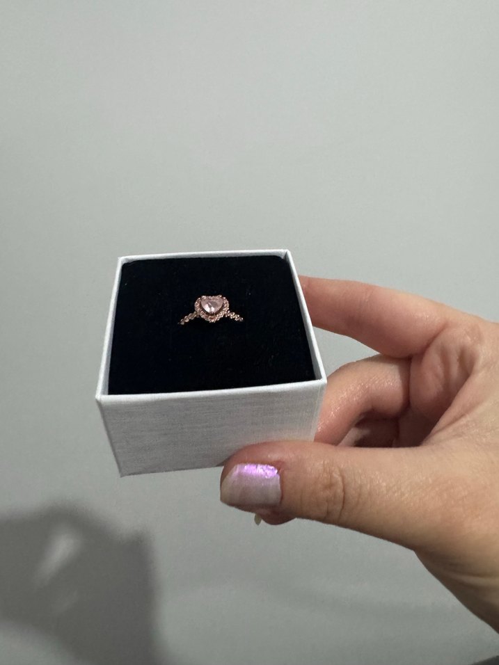 Minimalist tasarımlı, açık pembe taşlı ve payet detaylı kadın yüzüğü, romantik akşamlar için uygun.