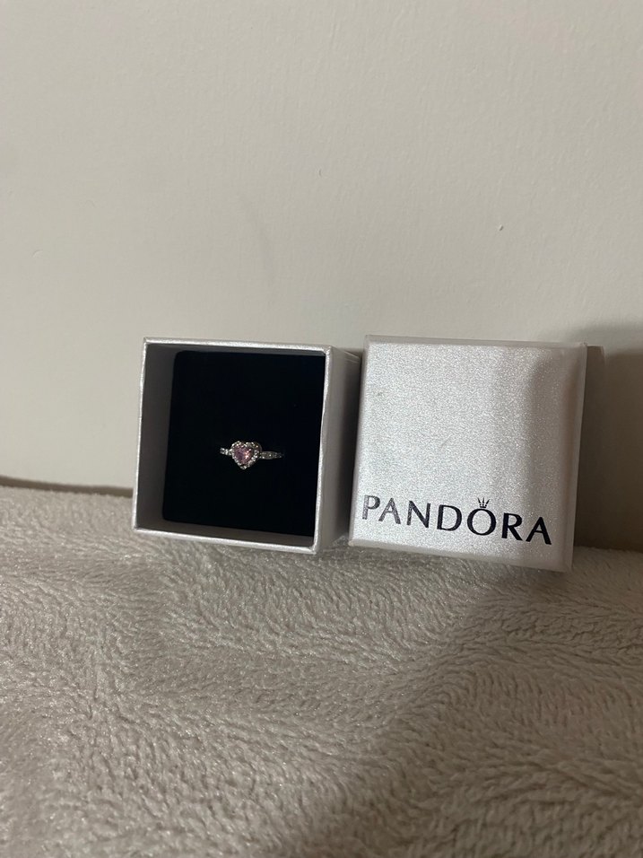 Pandora kadın yüzüğü, pembe taş ve payet detaylarıyla sade bir tasarıma sahiptir. Ayarlanabilir. Kutusuyla beraber gönderilecek hiç kullanılmadı.