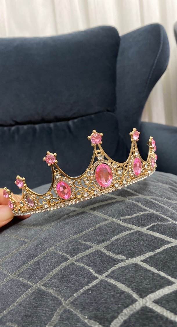 Pembe taşlarla süslenmiş, payet detaylı, bohem tarzda klasik ve gösterişli gelin tacı.