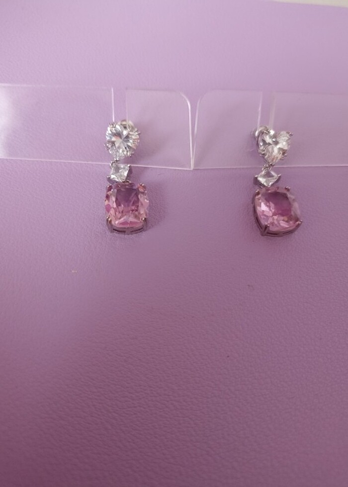 925 ayar Pembe taşlı sallantılı özel gün abiye küpesi