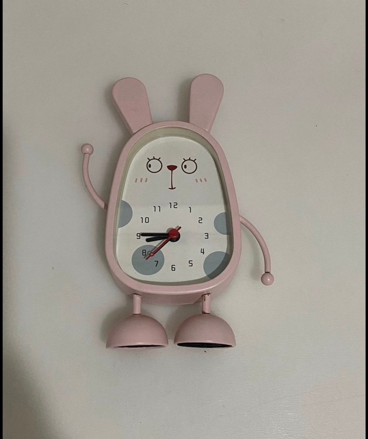 Pastel pembe renkte, kolları ve bacakları hareketli tavşan figürlü saat. On Off tusu calismiyor fakat figur ve sus olarak kullanılabilir