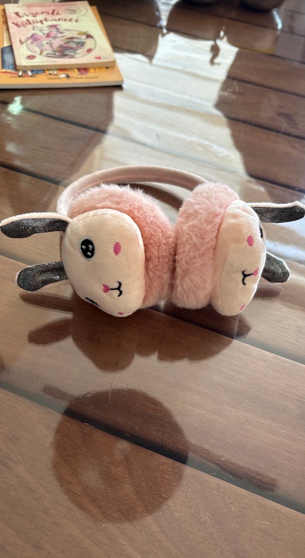 Nakışlı detaylara ve yumuşak kürke sahip pembe pastel renkli kulaklık, rahat ve tarz bir aksesuar sunar.Hiç kullanılmadı, yumuşacık