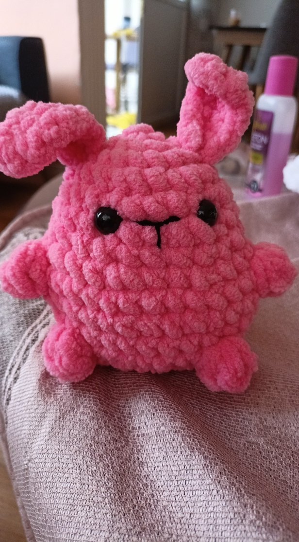 Dokulu yüzeyli, sevimli yüz ifadeleri olan renkli pembe yumuşak peluş oyuncak. Sarılmak için uygun.