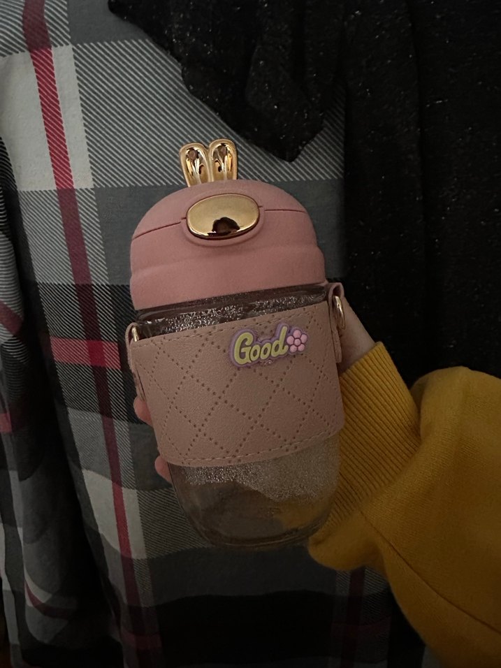 Marka temsili.Tavşan desenli pembe cam bir suluk.renginden dolayı çok kullanmadım:))