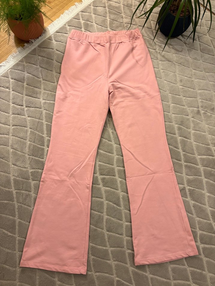 Pastel pembe renkte, bol paça tayt. Yumuşak sentetik kumaştan, günlük kullanıma uygun. 13-14