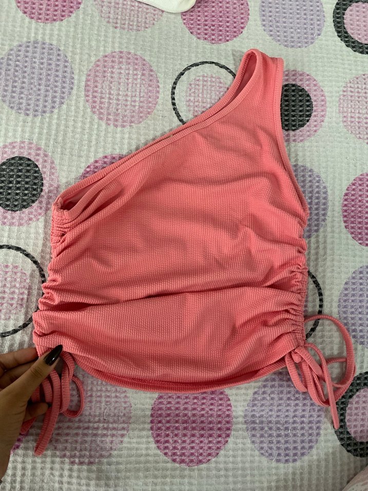 şeker pembesi tek kol büzgülü bluz