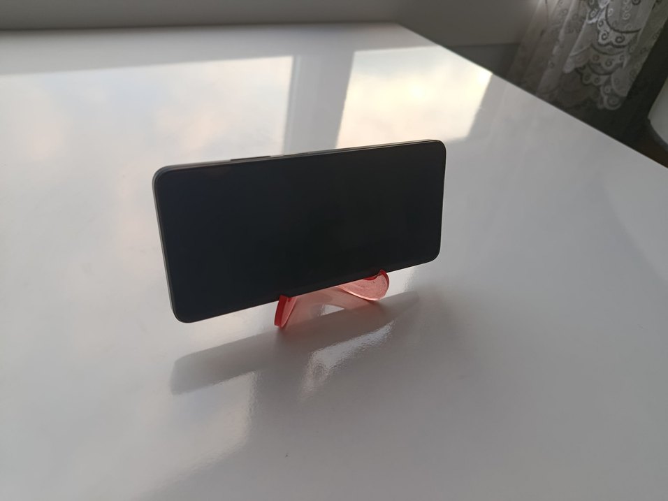 Koyu pembe renkte, telefonunuzu yatay konumda tutan ve kullanımı kolaylaştıran telefon tutucu stand.
