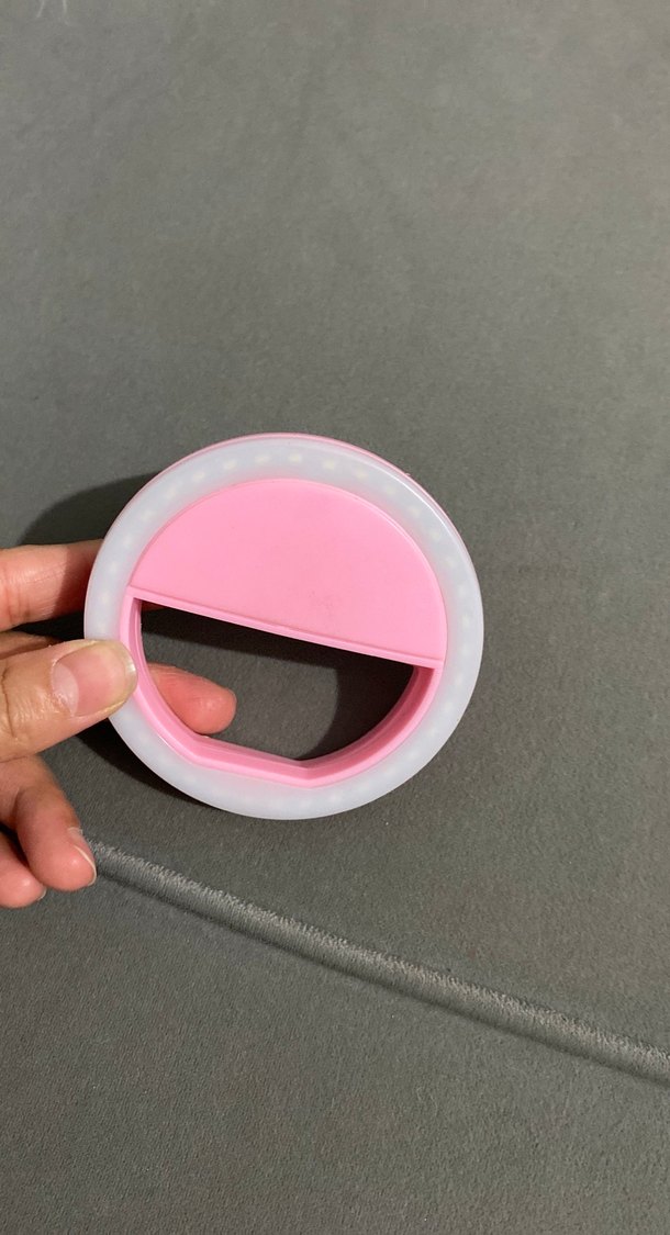 Pembe renkte, selfie ve video aramaları için ışık sağlayan halka ışıklı telefon tutucudur. Kompakt ve kolay takılır. Pilli ışık telefona da takılır