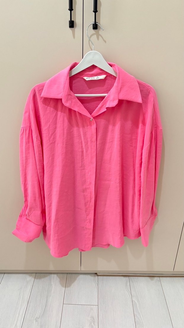 Pembe Tensel Kumaş Kadın Gömlek - Görsel 1