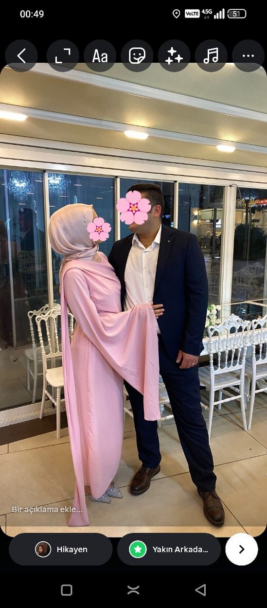 Pastel pembe renkte, uzun kollu ve drapeli detaylara sahip, modern Paris tarzını yansıtan uzun nişan elbisesi.