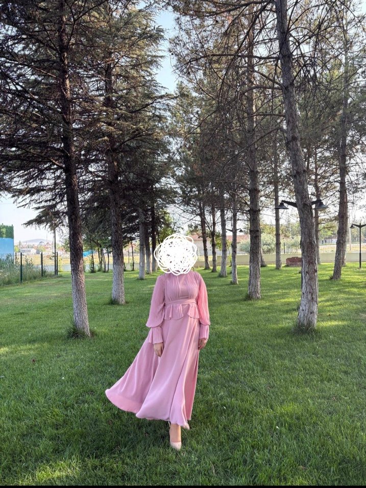 Pastel pembe renkte, drapeli tasarıma sahip, şifon kumaştan üretilmiş astarlı uzun elbise. Birgül Bektaş marka. 1 kez nişan için kullandım. Şalı ile birlikte gönderebilirim isterseniz.
