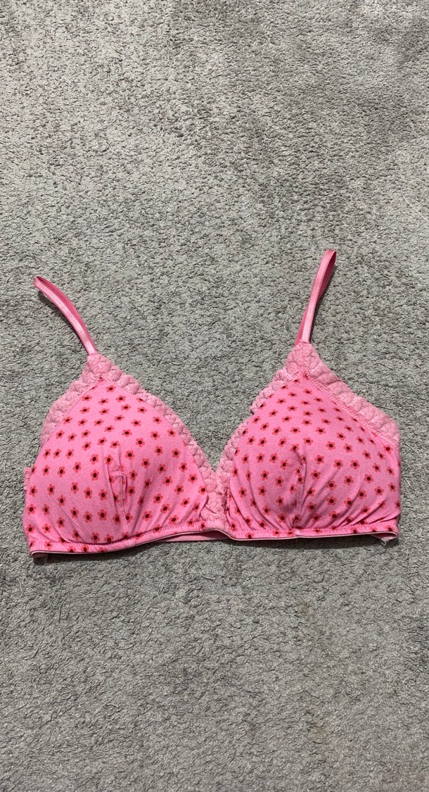 Pembe renkli sütyen, küçük yıldız desenleriyle tie-dye görünümü ve ayarlanabilir askılar sunar, rahat kullanım sağlar. Ufak bir söküğü var bilginize