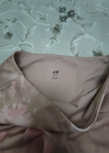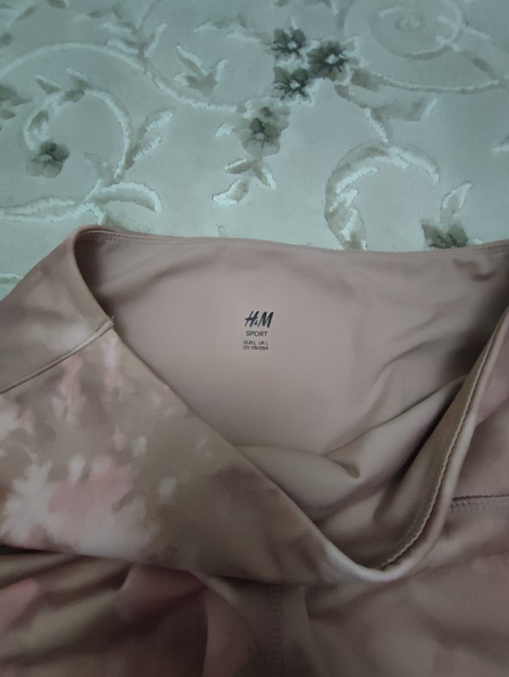 Pembe tie-dye desenli, dantelli, normal boyda, sentetik kumaştan yapılmış, kadın tayt. Günlük kullanıma uygun, trend sokak stili için ideal. h&m marka L beden tayt