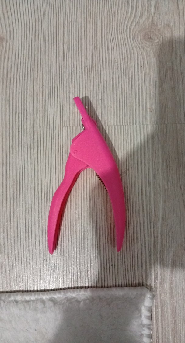 Kolay tırnak kesimi için rahat tutuşlu pembe tırnak makası.