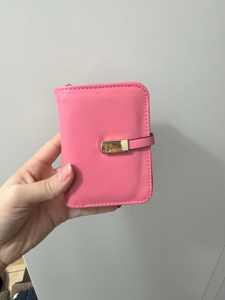 Pastel pembe renkte, tokalı kapanışa sahip, düz desensiz deri kadın cüzdanı, günlük sokak stili için uygundur.