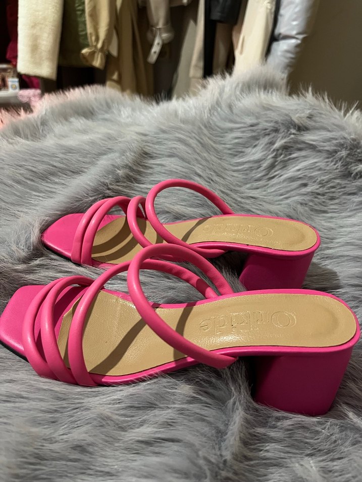 Pembe Tokalı Kadın Topuklu Sandalet