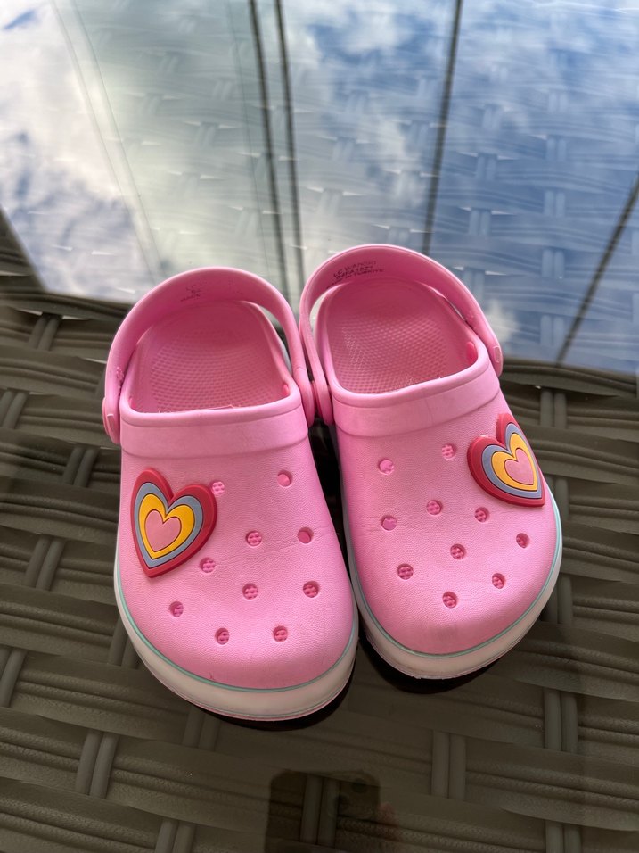 Pastel pembe renkte, tokalı ve kalp süslemeli kız çocuk terliği. Bohem, hippie ve retro sokak tarzına uygun.