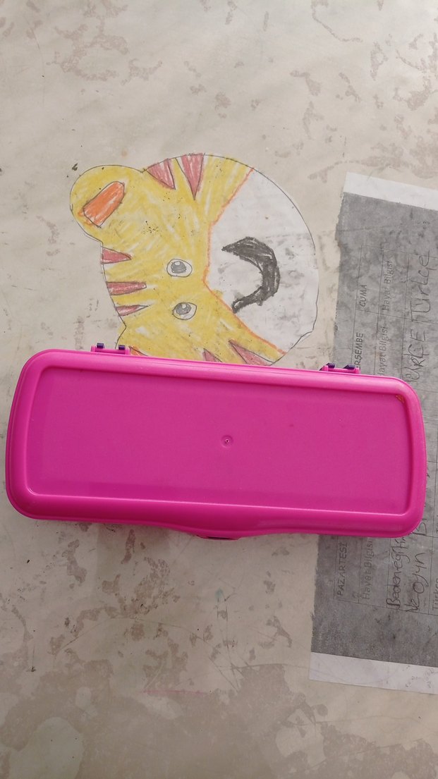 Pembe Tokalı Renkli Çocuk kalemlik kutusu